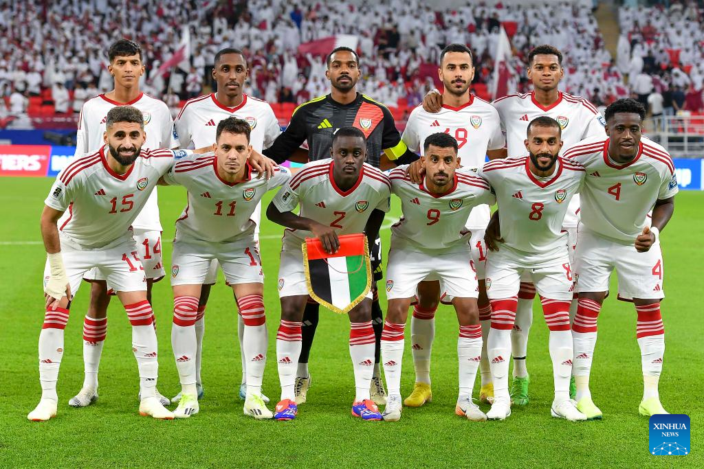 Players of the United Arab Emirates pose for photos before the Group A match of 2026 FIFA World Cup Asian qualifiers between Qatar and the United Arab Emirates in Al Rayyan, Qatar, Sept. 5, 2024. (Photo by Nikku/Xinhua)