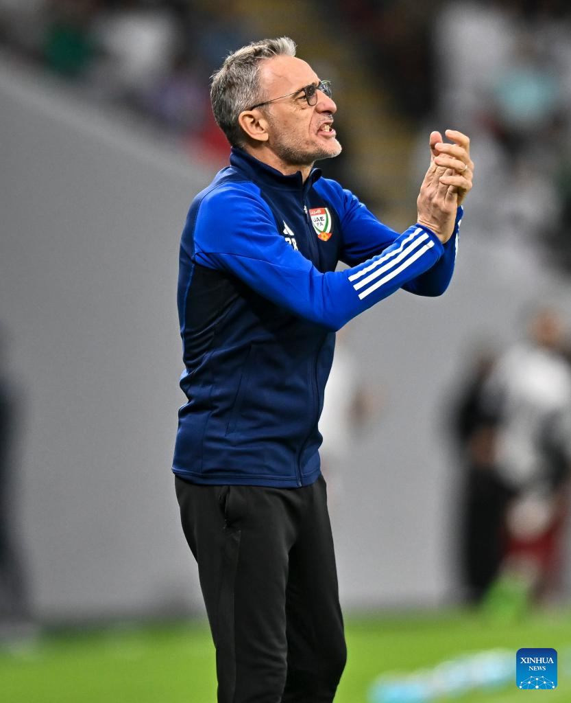 Paulo Bento, head coach of the United Arab Emirates reacts during the Group A match of 2026 FIFA World Cup Asian qualifiers between Qatar and the United Arab Emirates in Al Rayyan, Qatar, Sept. 5, 2024. (Photo by Nikku/Xinhua)