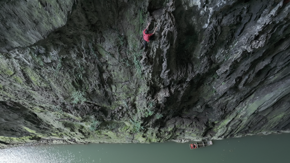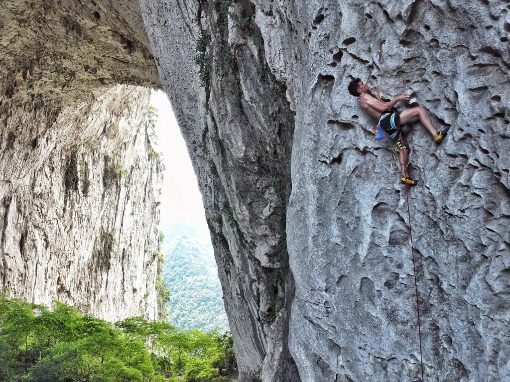 Among them was famed Spanish climber Dani Andrada, who, along with his partner, made the first ascent of a multi-pitch, 210-meter roof climb in Chuangshang Cave.