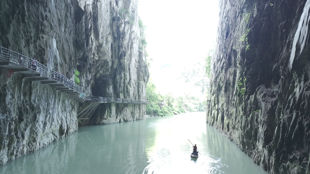Entering the Getu River area, visitors are immediately struck by the dramatic limestone caves formed by collapsed karst systems. The most spectacular among them is a pierced cave where morning sunlight often creates ethereal beams through the ceiling. There are also a lot of knife-edged karst cliffs, towering hundreds of meters high.