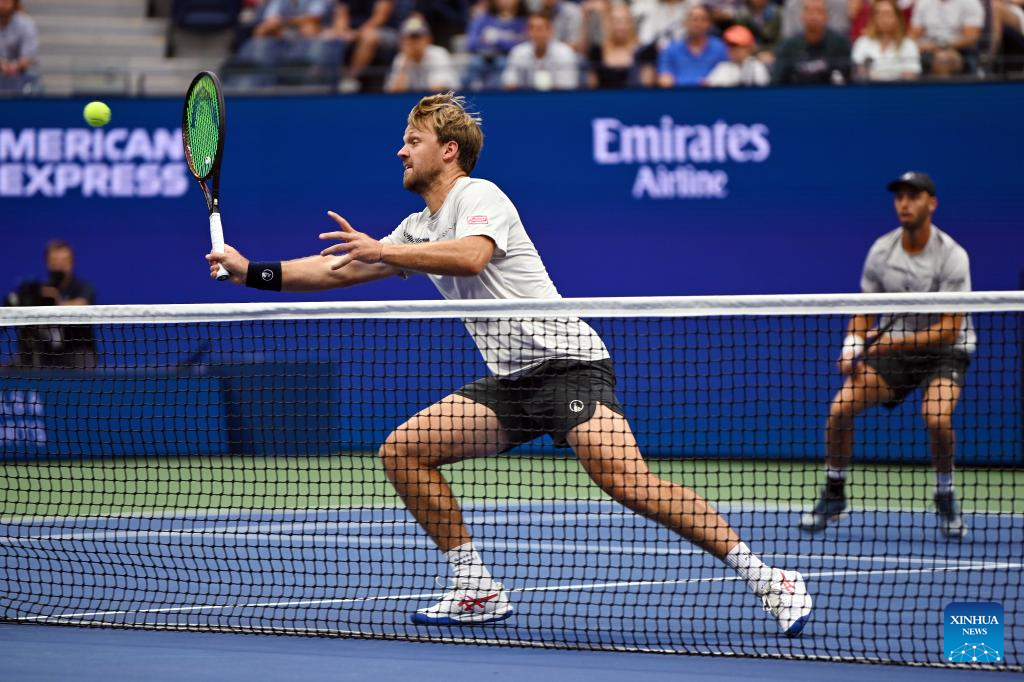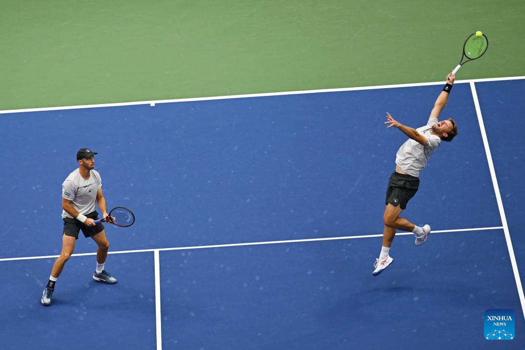 Kevin Krawietz (R) and Tim Puetz compete during the men's final match between Max Purcell/Jordan Thompson of Australia and Kevin Krawietz/Tim Puetz of Germany at the 2024 US Open tennis championships in New York, the United States, Sept. 7, 2024. (Xinhua/Li Rui)