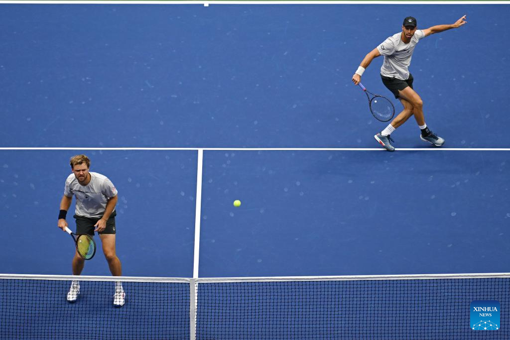 Kevin Krawietz (L) and Tim Puetz compete during the men's final match between Max Purcell/Jordan Thompson of Australia and Kevin Krawietz/Tim Puetz of Germany at the 2024 US Open tennis championships in New York, the United States, Sept. 7, 2024. (Xinhua/Li Rui)