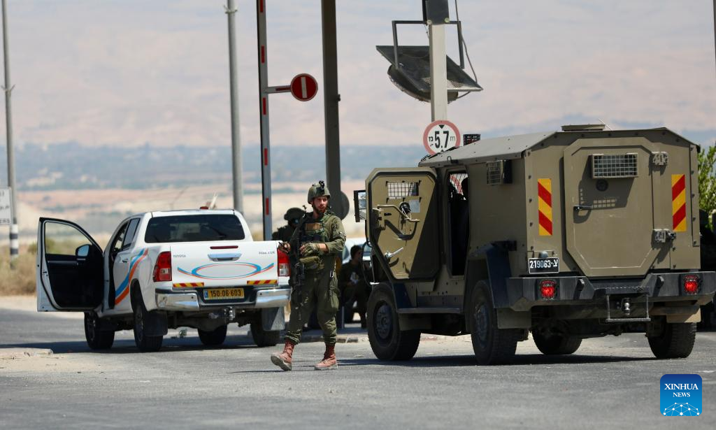 An Israeli soldier stands guard near the Allenby Bridge, a key crossing point between the Israeli-occupied West Bank and Jordan, after a shooting attack on Sept. 8, 2024. A gunman opened fire on Sunday at the Allenby Bridge, killing three people before being shot dead by Israeli forces, Israeli officials said. (Photo by Jamal Awad/Xinhua)