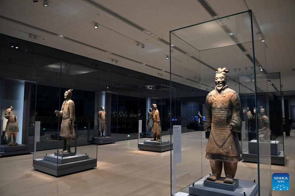 Terracotta Warriors are pictured during an exhibition commemorating the 50th anniversary of the discovery and excavation of the iconic Terracotta Warriors at the Emperor Qinshihuang's Mausoleum Site Museum in Xi'an, capital of northwest China's Shaanxi Province, Sept. 8, 2024.