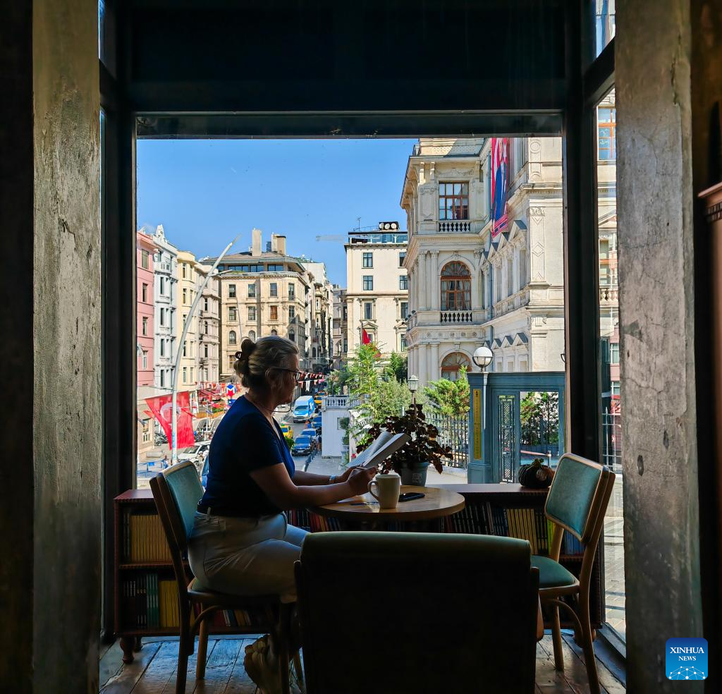 This photo taken with a mobile phone shows a woman reading a book in a bookstore in Istanbul, Türkiye, Sept. 6, 2024. (Xinhua/Liu Lei)