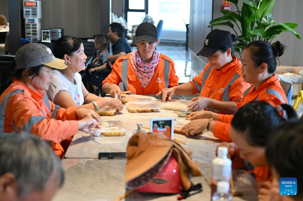 People have free lunch at a restaurant in Haikou, south China's Hainan Province, Sept. 9, 2024.
