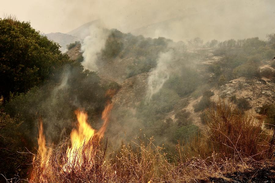 SACRAMENTO, the United States, Sept. 9 (Xinhua) -- Fueled by excessive heat and drought, several large wildfires raged across the western United States on Sunday, forcing thousands of people to evacuate their homes and worrying climate experts about more fires in the coming days.