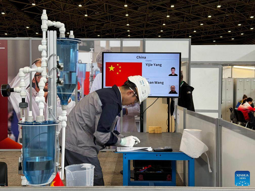 This year's competition is scheduled to run from Sept. 11 to 14, with the closing ceremony on Sept. 15. The event will bring together approximately 1,400 participants from nearly 70 countries and regions, competing in 59 skill categories. (Xinhua/Luo Yu)