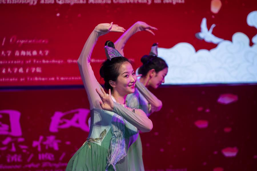 KATHMANDU, Sept. 13 (Xinhua) -- Art troupes from two Chinese universities gave an art performance in the Nepali capital on Wednesday evening to mark the 75th anniversary of the founding of the People's Republic of China and the traditional Chinese Mid-Autumn Festival.