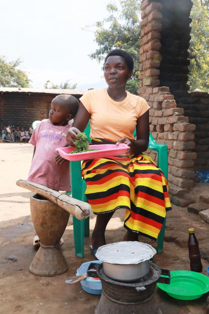 John now lives in a modest but well-kept two-room house near the village entrance. During a recent visit, her five-year-old son played barefoot outside while she prepared a nutritious porridge made from maize, vegetables, eggs and sugar.