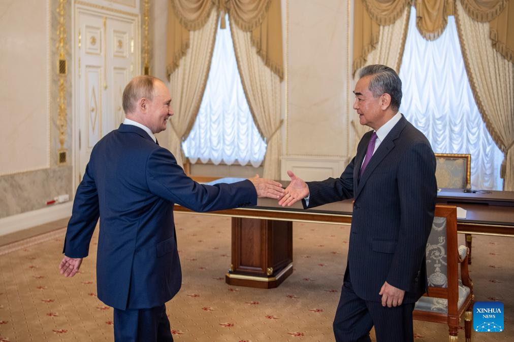 Putin made the remarks during talks with Wang Yi, a member of the Political Bureau of the Communist Party of China Central Committee and director of the Office of the Central Commission for Foreign Affairs, in St. Petersburg.