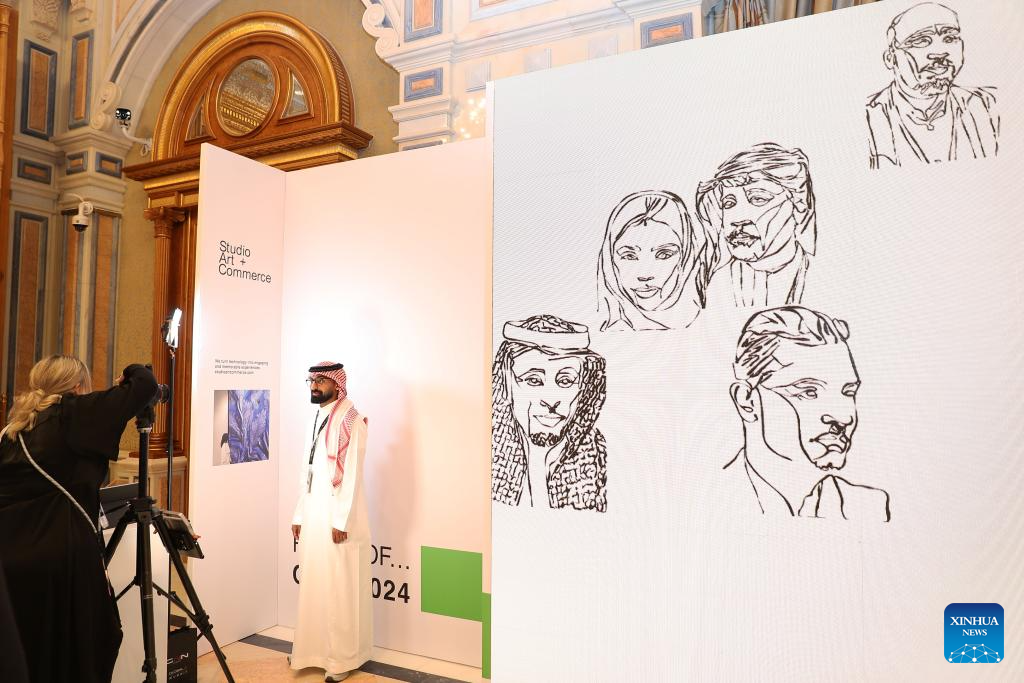 Visitors experience documenting faces of people with AI during the third edition of the Global AI Summit (GAIN) in Riyadh, Saudi Arabia, Sept. 10, 2024. (Xinhua/Wang Dongzhen)
