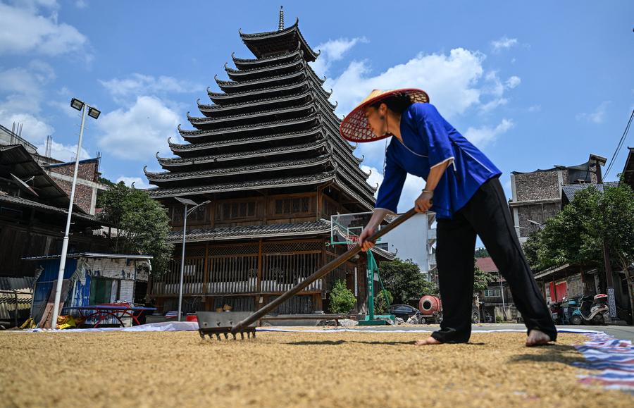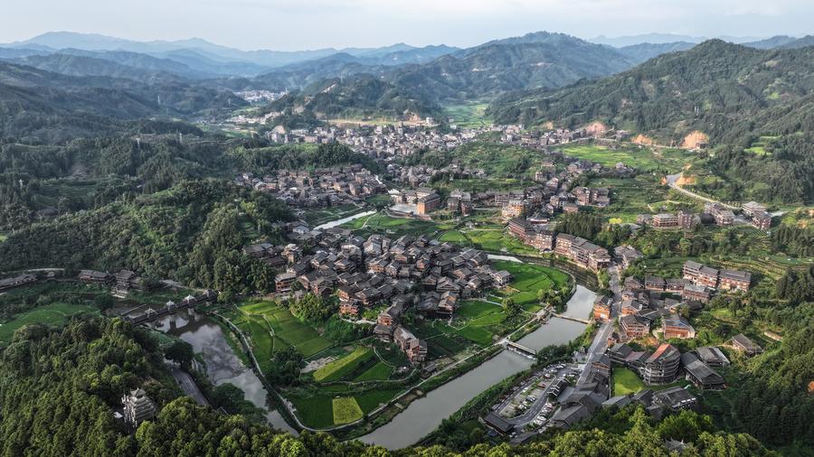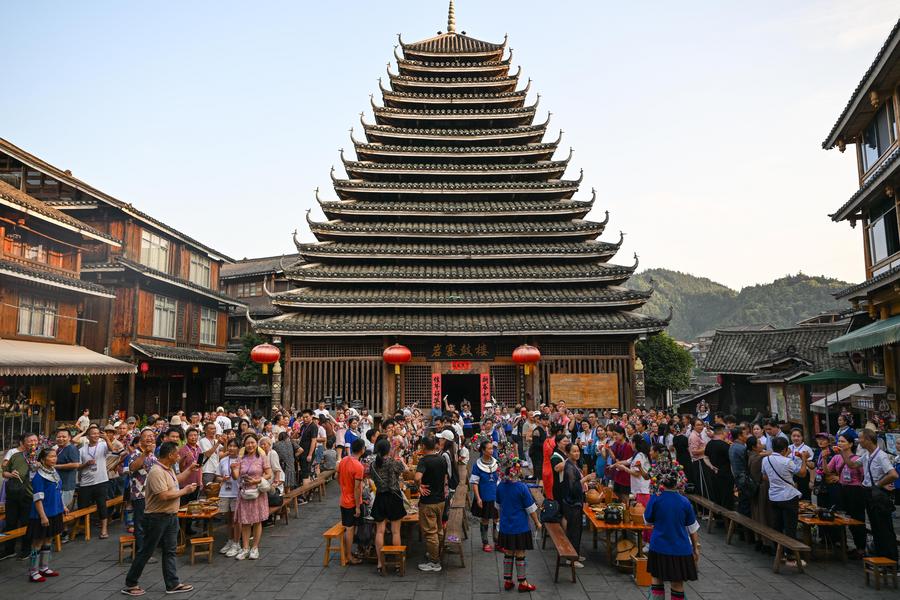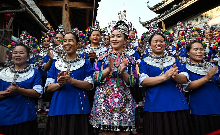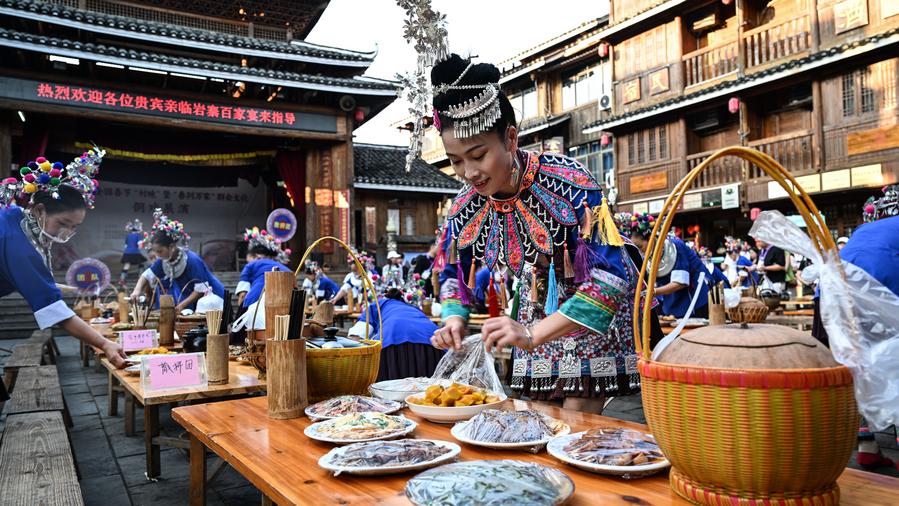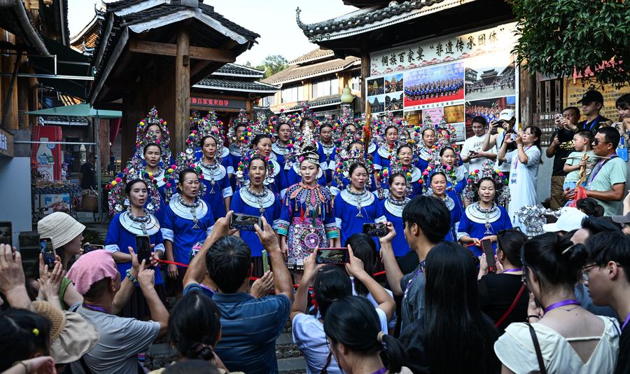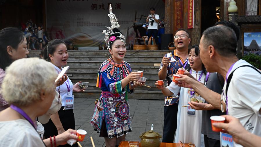 NANNING, Sept. 13 (Xinhua) -- As the most populous county for the Dong ethnic group in China, Sanjiang Dong Autonomous County in south China's Guangxi Zhuang Autonomous Region is renowned for the colorful culture of the Dong people. Chengyang Eight Villages, a 5A or top-level tourist attraction in the county, well preserves the traditional Dong culture in terms of architecture, folk arts and lifestyles.