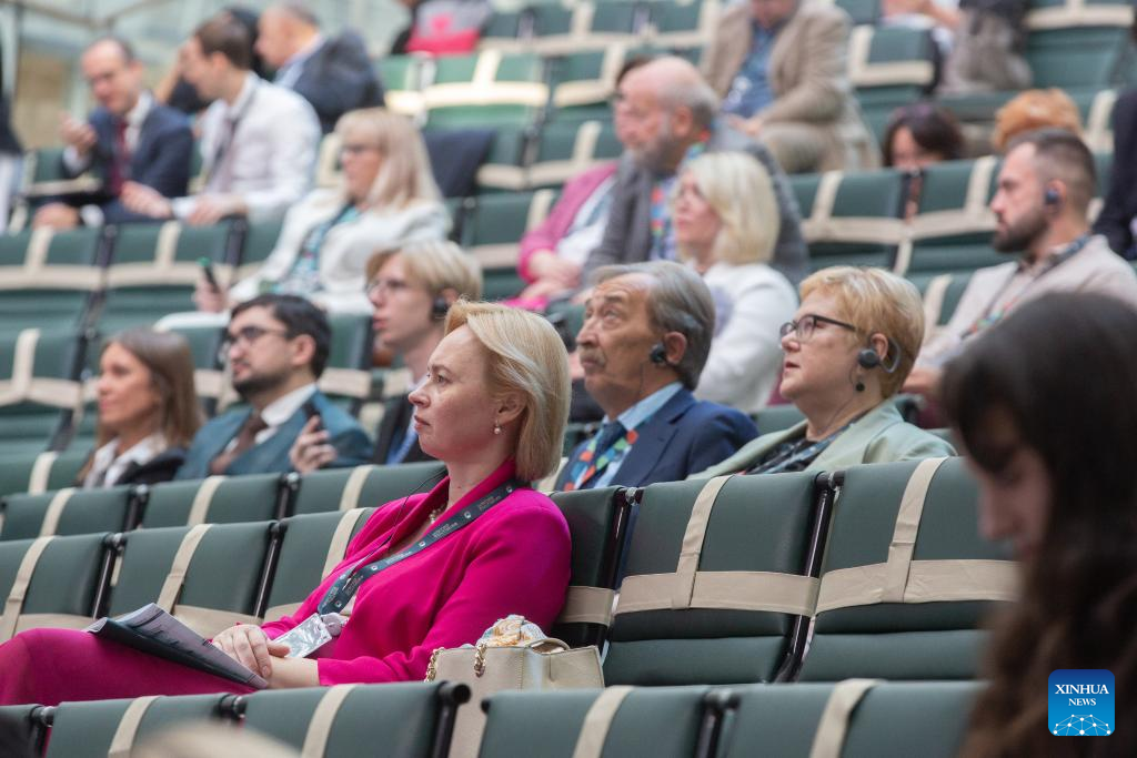 Representatives from Russia and abroad watch a panel discussion during the 10th St. Petersburg International United Cultures Forum in St. Petersburg, Russia, Sept. 12, 2024. The 10th St. Petersburg International United Cultures Forum is taking place in Russia's second-largest city, gathering about 1,700 representatives from Russia and abroad.