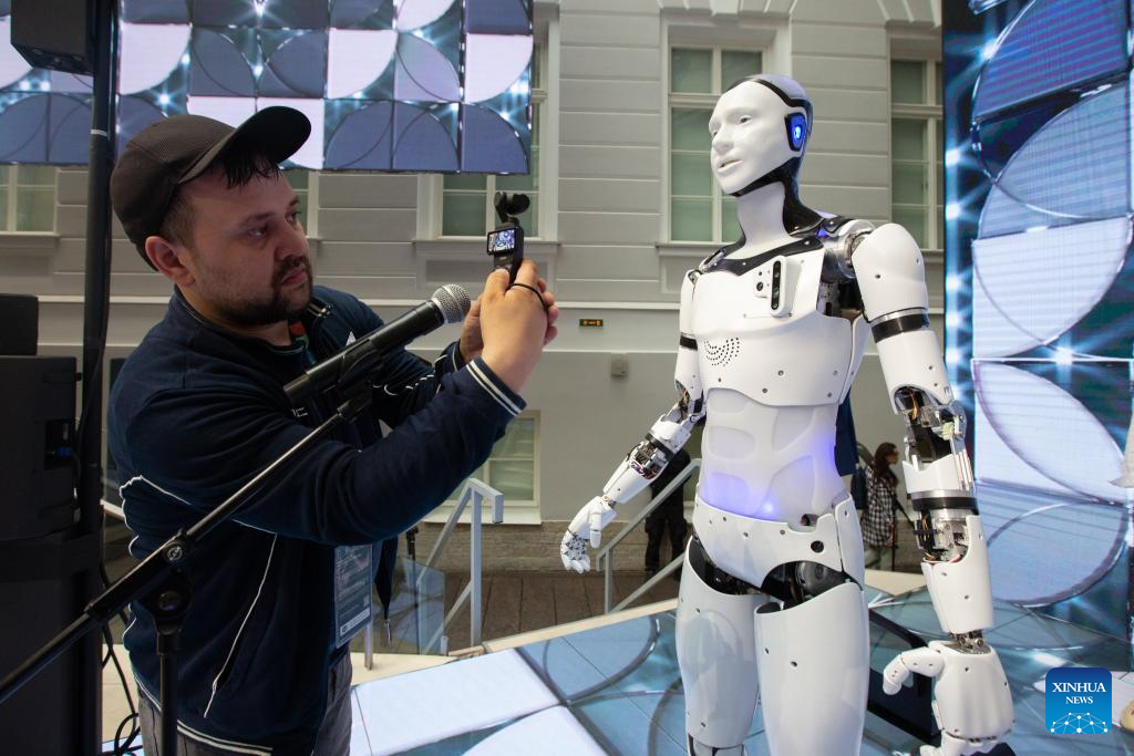 A singing robot is pictured during the 10th St. Petersburg International United Cultures Forum in St. Petersburg, Russia, Sept. 12, 2024. The 10th St. Petersburg International United Cultures Forum is taking place in Russia's second-largest city, gathering about 1,700 representatives from Russia and abroad.