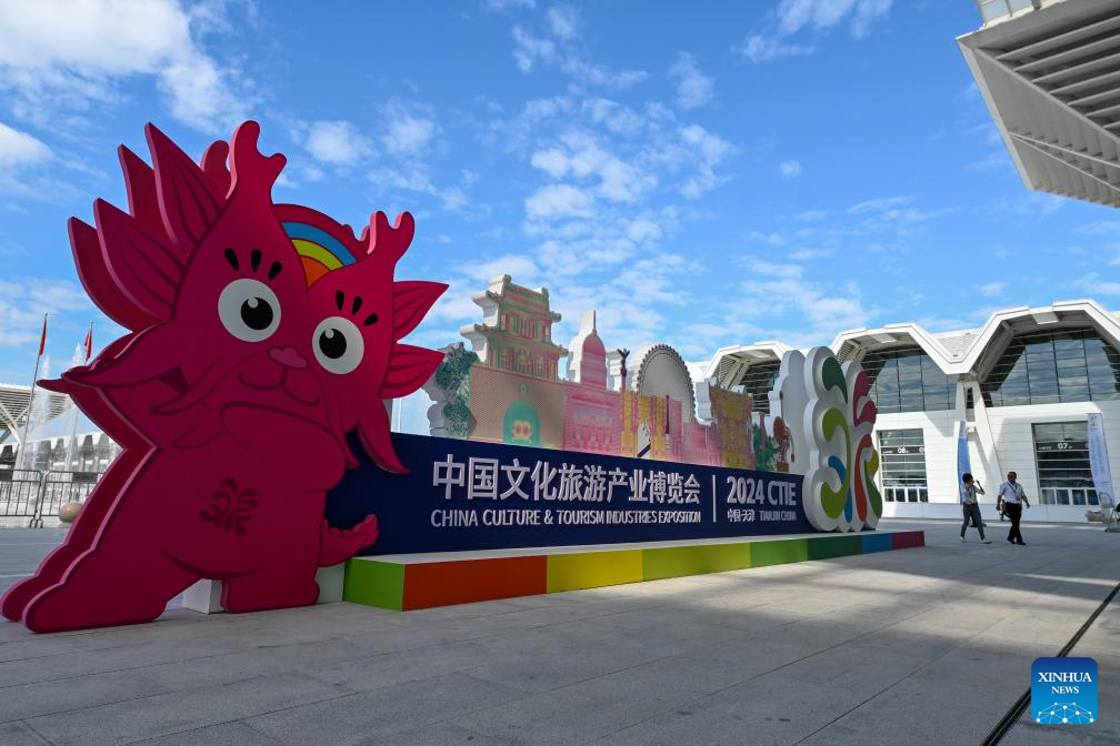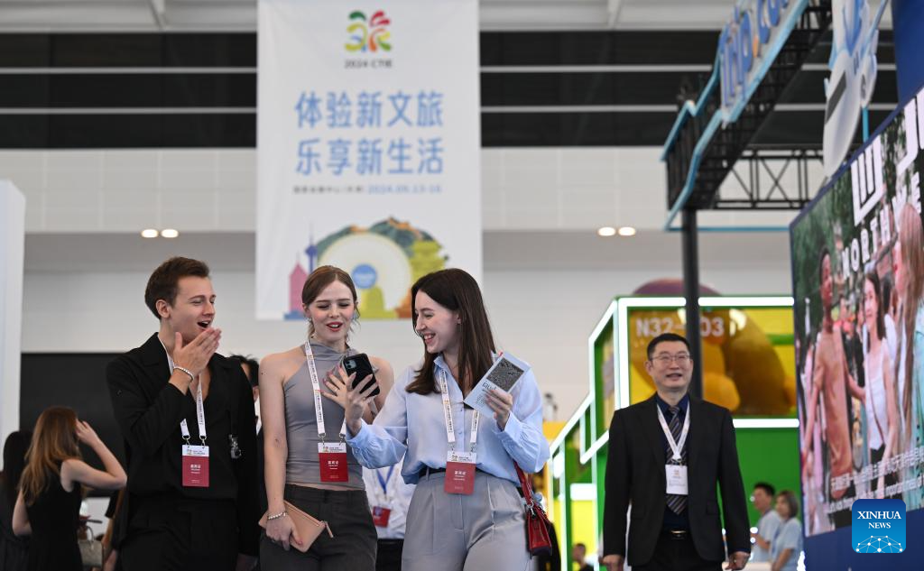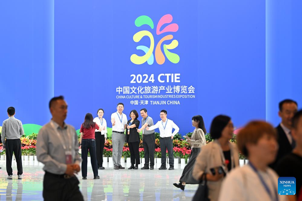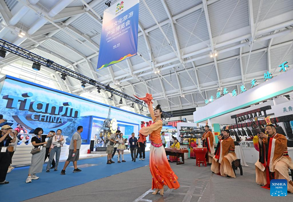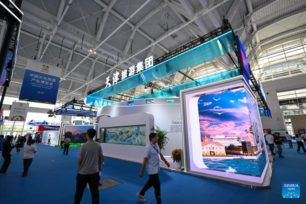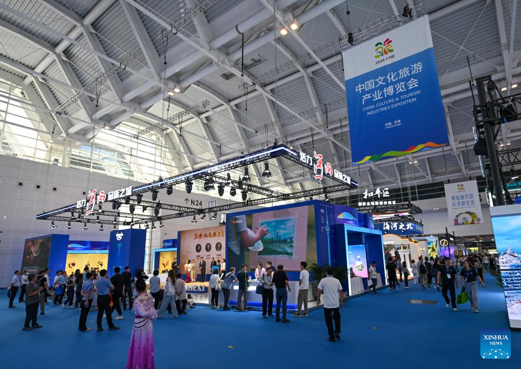 The 2024 China Culture and Tourism Industries Exposition is held in north China's Tianjin, Sept. 13, 2024. The four-day exposition opened here on Friday. Over 2,000 cultural and tourism enterprises are participating, with immersive experience spaces showcasing smart tourism and outdoor equipment, achievements in deep integration of culture and tourism, as well as development in innovative cultural products and services. (Xinhua/Sun Fanyue)