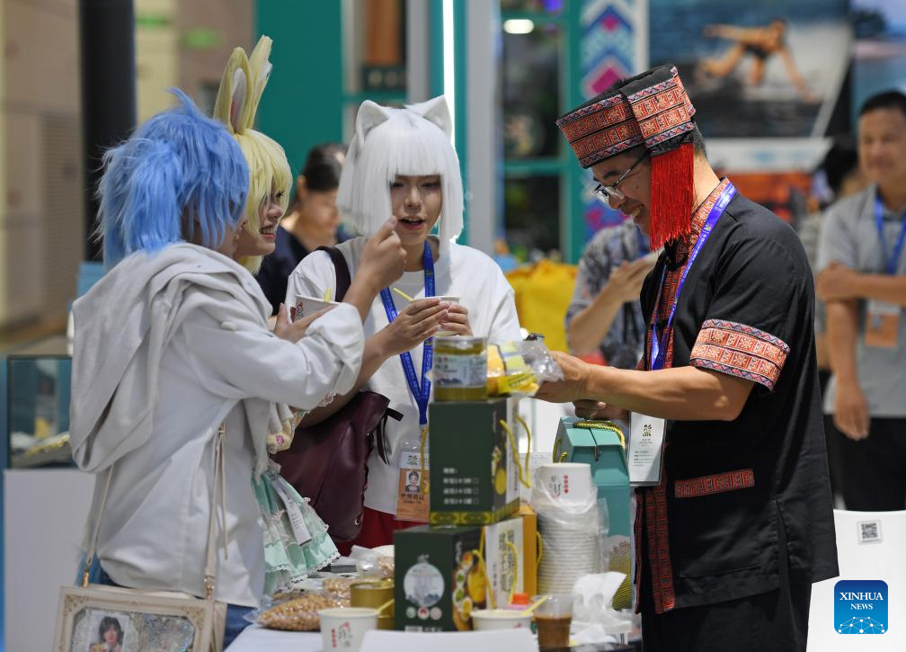 People visit the 2024 China Culture and Tourism Industries Exposition in north China's Tianjin, Sept. 13, 2024. The four-day exposition opened here on Friday. Over 2,000 cultural and tourism enterprises are participating, with immersive experience spaces showcasing smart tourism and outdoor equipment, achievements in deep integration of culture and tourism, as well as development in innovative cultural products and services. (Xinhua/Zhao Zishuo)