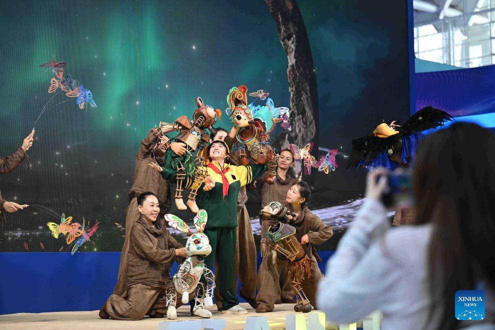 Actors perform during the 2024 China Culture and Tourism Industries Exposition in north China's Tianjin, Sept. 13, 2024. The four-day exposition opened here on Friday. Over 2,000 cultural and tourism enterprises are participating, with immersive experience spaces showcasing smart tourism and outdoor equipment, achievements in deep integration of culture and tourism, as well as development in innovative cultural products and services. (Xinhua/Sun Fanyue)
