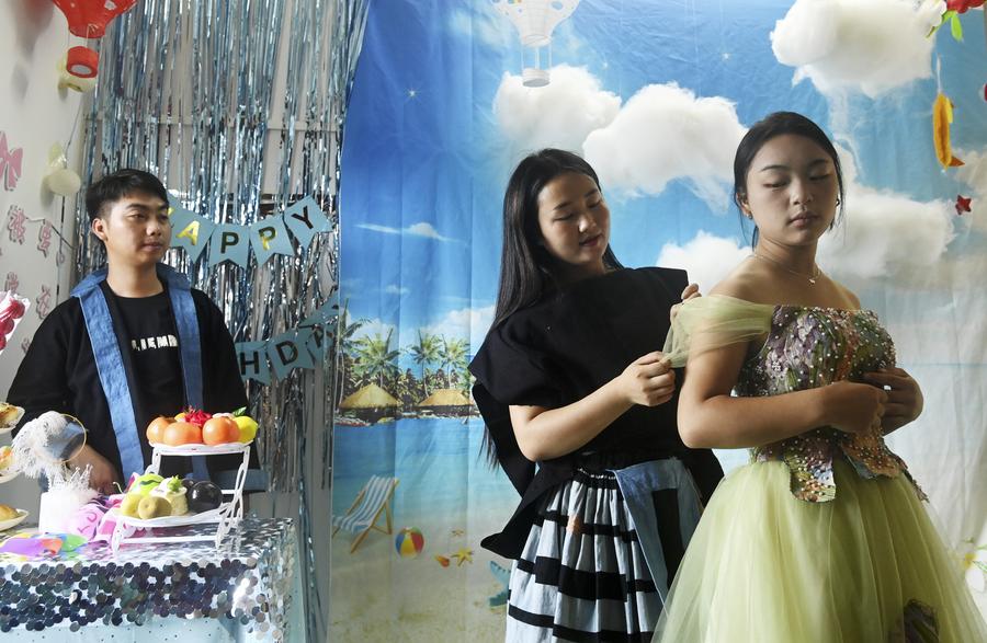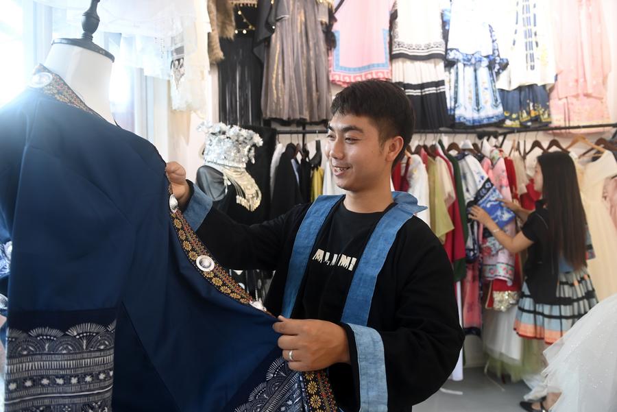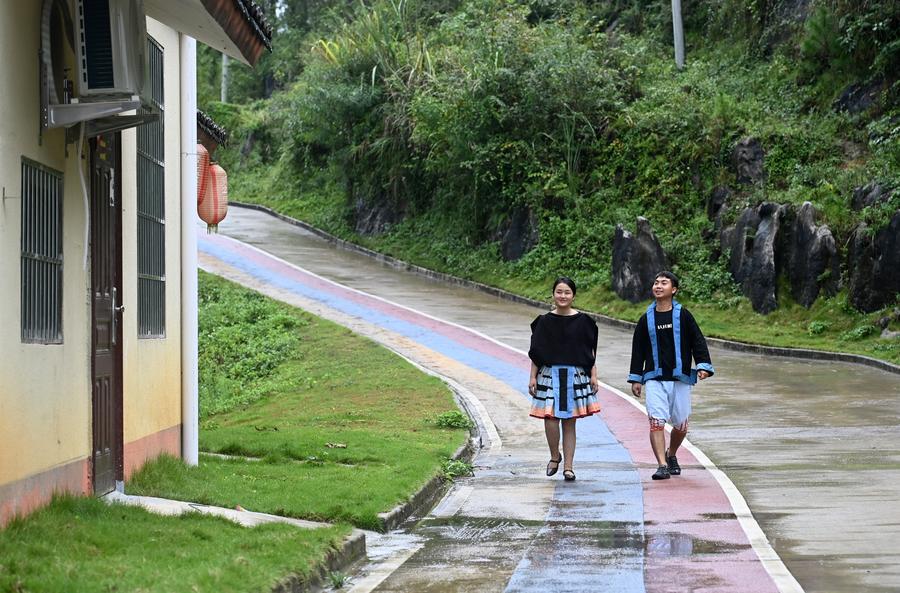 Li Ling (R) and her husband Li Ming set up a scene for photo shooting at their photo studio at a poverty-relief relocation site for the Baiku Yao People in Nandan County, south China's Guangxi Zhuang Autonomous Region, Sept. 11, 2024. (Xinhua/Lu Boan)Li Ling (C) arranges the costume for a customer at her photo studio in a poverty-relief relocation site for the Baiku Yao People in Nandan County, south China's Guangxi Zhuang Autonomous Region, Sept. 11, 2024. (Xinhua/Lu Boan)Li Ling (C) takes photos for a customer at her photo studio in a poverty-relief relocation site for the Baiku Yao People in Nandan County, south China's Guangxi Zhuang Autonomous Region, Sept. 11, 2024. (Xinhua/Lu Boan)Li Ming (L) and his wife Li Ling make lemon tea at their food and beverage store in a poverty-relief relocation site for the Baiku Yao People in Nandan County, south China's Guangxi Zhuang Autonomous Region, Sept. 11, 2024. (Xinhua/Lu Boan)Li Ming (front) and his wife Li Ling arrange costumes at their photo studio in a poverty-relief relocation site for the Baiku Yao People in Nandan County, south China's Guangxi Zhuang Autonomous Region, Sept. 11, 2024. (Xinhua/Lu Boan)Li Ling (L) selects costumes for a customer at her photo studio in a poverty-relief relocation site for the Baiku Yao People in Nandan County, south China's Guangxi Zhuang Autonomous Region, Sept. 11, 2024. (Xinhua/Lu Boan)Li Ling (L) and her husband Li Ming walk on a path at a poverty-relief relocation site for the Baiku Yao People in Nandan County, south China's Guangxi Zhuang Autonomous Region, Sept. 11, 2024. (Xinhua/Lu Boan)Li Ling (R) and her husband Li Ming stand outside their photo studio and food and beverage store in a poverty-relief relocation site for the Baiku Yao People in Nandan County, south China's Guangxi Zhuang Autonomous Region, Sept. 11, 2024. (Xinhua/Lu Boan)An aerial drone photo taken on Aug. 28, 2024 shows a poverty-relief relocation site for the Baiku Yao People in Nandan County, south China's Guangxi Zhuang Autonomous Region. (Xinhua/Zhou Hua)