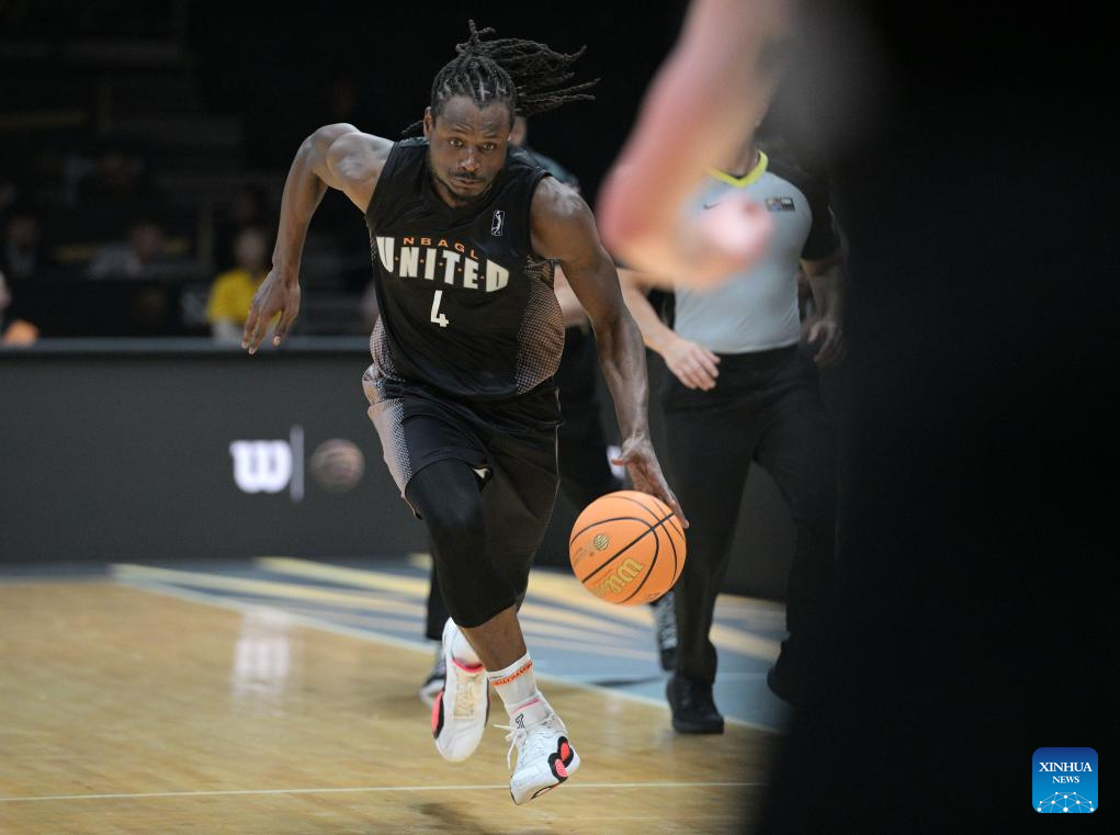Deonte Burto of NBA G League United drives the ball during the group B match between NBA G League United of the United States and Tasmania JackJumpers of Australia at the FIBA Intercontinental Cup Singapore 2024 in Singapore, Sept. 14, 2024. (Photo by Then Chih Wey/Xinhua)