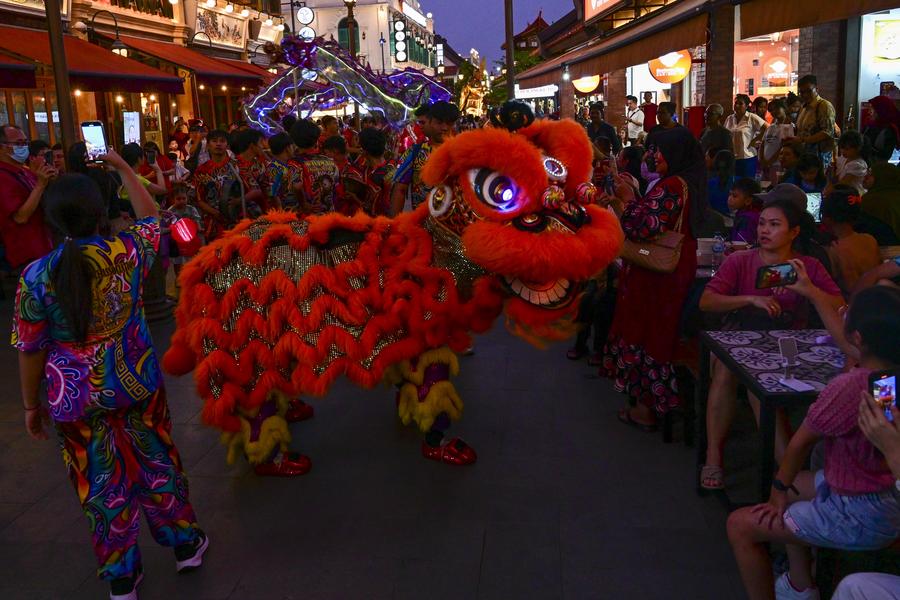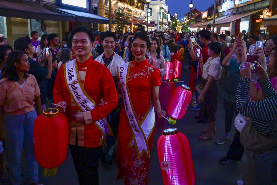 A Lion dance performs during Mid-Autumn Festival in Pantjoran Chinatown PIK in Jakarta, Indonesia, Sept. 14, 2024. (Xinhua/Zulkarnain)People wearing traditional costumes participate in a parade during a celebration of the upcoming Mid-Autumn Festival in Pantjoran Chinatown PIK in Jakarta, Indonesia, Sept. 14, 2024. (Xinhua/Zulkarnain)People watch a lion dance performance during a celebration of the upcoming Mid-Autumn Festival in Pantjoran Chinatown PIK in Jakarta, Indonesia, Sept. 14, 2024. (Xinhua/Zulkarnain)■