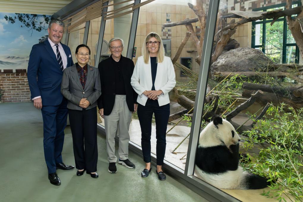 When visiting the pandas at the Schoenbrunn Zoo on Wednesday, Chinese Ambassador to Austria Qi Mei thanked the zoo and the Austrian side for taking care of the pandas. She said that the Austrian people will have more opportunities to see the beloved pandas with a new panda conservation agreement between the two countries.