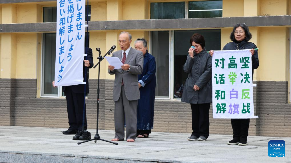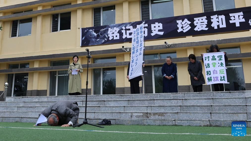 CHANGCHUN, Sept. 16 (Xinhua) -- Under the Chinese national flag, 76-year-old Japanese man Kuroi Akio removed his shoes and socks and knelt down to kowtow before the Chinese people. In this way he sought to offer an apology on behalf of his father at a historical site in northeast China's Jilin Province, where Japanese forces once committed atrocities during the invasion of China.