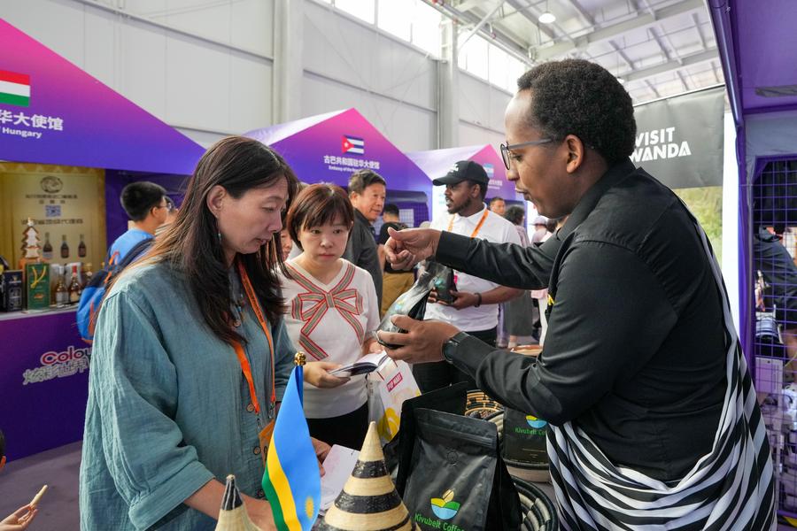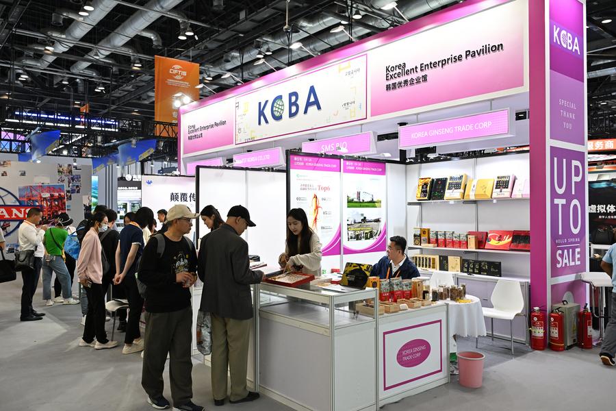 Visitors are seen during the 2024 China International Fair for Trade in Services (CIFTIS) at the Shougang Park in Beijing, capital of China, Sept. 15, 2024. (Xinhua/Ju Huanzong)A staff member arranges exhibits at the booth of Embassy of the Republic of Yemen during the 2024 China International Fair for Trade in Services (CIFTIS) at the Shougang Park in Beijing, capital of China, Sept. 14, 2024. (Xinhua/Cao Mengyao)A staff member displays liquor produced by Mongolia during the 2024 China International Fair for Trade in Services (CIFTIS) at the China National Convention Center in Beijing, capital of China, Sept. 15, 2024. (Xinhua/Chen Zhonghao)This photo taken on Sept. 15, 2024 shows the Korea excellent enterprise pavilion during the 2024 China International Fair for Trade in Services (CIFTIS) at the China National Convention Center in Beijing, capital of China. (Xinhua/Li Xin)A staff member introduces a bag of coffee beans to visitors at the booth of Embassy of the Republic of Rwanda during the 2024 China International Fair for Trade in Services (CIFTIS) at the Shougang Park in Beijing, capital of China, Sept. 15, 2024. (Xinhua/Ju Huanzong)People visit the booth of Shopee during the 2024 China International Fair for Trade in Services (CIFTIS) at the China National Convention Center in Beijing, capital of China, Sept. 12, 2024. (Xinhua/Ding Hongfa)People talk at the booth of Germany during the 2024 China International Fair for Trade in Services (CIFTIS) at the China National Convention Center in Beijing, capital of China, Sept. 15, 2024. (Xinhua/Chen Zhonghao)Visitors are seen at the booth of the International Bamboo and Rattan Organization during the 2024 China International Fair for Trade in Services (CIFTIS) at the China National Convention Center in Beijing, capital of China, Sept. 13, 2024. (Xinhua/Cao Mengyao)■