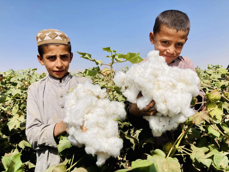 This photo taken on Sept. 14, 2024 shows a cotton plant in a cotton field in Kandahar province, Afghanistan. (Photo by Arghand/Xinhua)A boy harvests cotton in a cotton field in Kandahar province, Afghanistan, Sept. 14, 2024. (Photo by Arghand/Xinhua)Afghan children show newly harvested cotton in a cotton field in Kandahar province, Afghanistan, Sept. 14, 2024. (Photo by Arghand/Xinhua)This photo taken on Sept. 14, 2024 shows a cotton field in Kandahar province, Afghanistan. (Photo by Arghand/Xinhua)A farmer collects cotton in a cotton field in Kandahar province, Afghanistan, Sept. 14, 2024. (Photo by Arghand/Xinhua)This photo taken on Sept. 14, 2024 shows a cotton plant in a cotton field in Kandahar province, Afghanistan. (Photo by Arghand/Xinhua)■