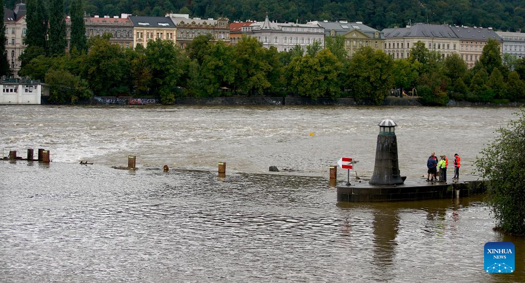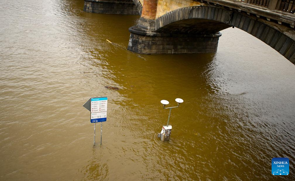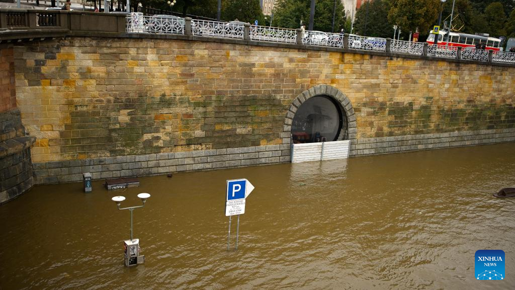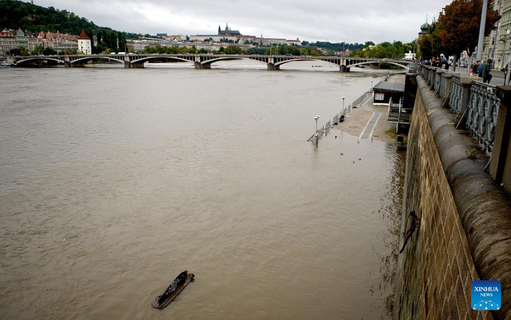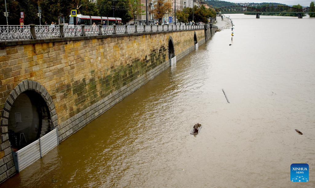 A section of embankment of the Vltava River is flooded in Prague, the Czech Republic, on Sept. 16, 2024. At least three people were dead and seven others went missing due to floods caused by extreme rainfall in the Czech Republic, police said on Monday. (Photo by Dana Kesnerova/Xinhua)