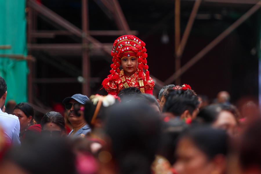 KATHMANDU, Sept. 17 (Xinhua) -- Kumari Puja is celebrated through the ceremonious worship of young girls as manifestations of the divine female energy or devi in Asian religious traditions in Nepal.