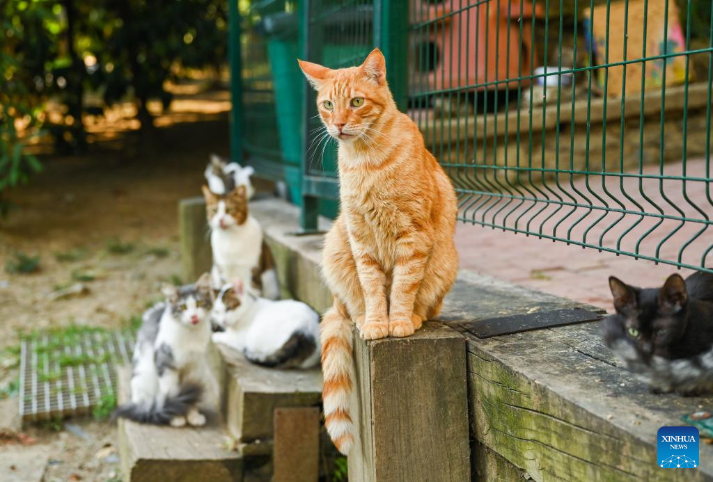 This photo taken on Sept. 16, 2024 shows stray cats in the "cat park" at Macka Park in Istanbul, Türkiye. (Xinhua/Liu Lei)