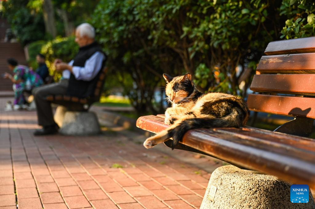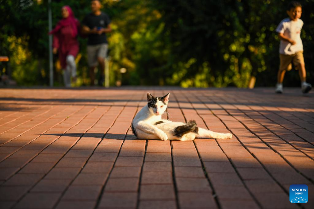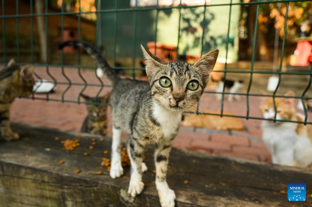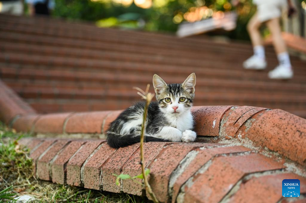 This photo taken on Sept. 16, 2024 shows a stray cat in the "cat park" at Macka Park in Istanbul, Türkiye. (Xinhua/Liu Lei)