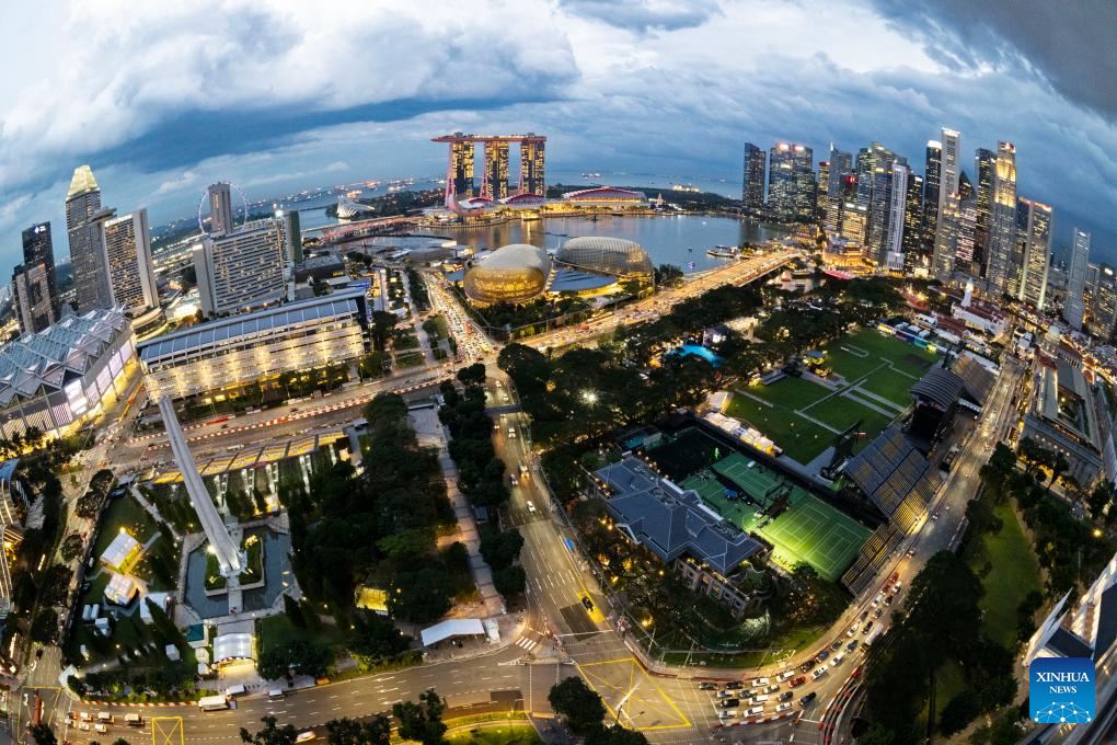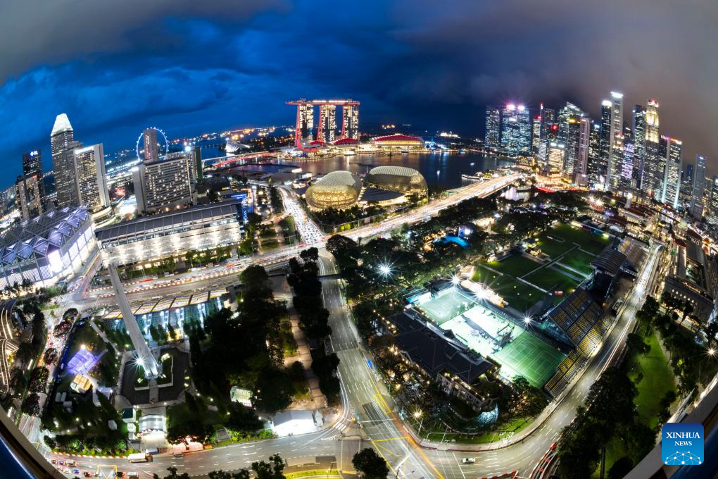 This photo taken on Sept. 17, 2024 shows the overall view of the Marina Bay street circuit for the upcoming F1 Singapore Grand Prix in Singapore. (Photo by Then Chih Wey/Xinhua)