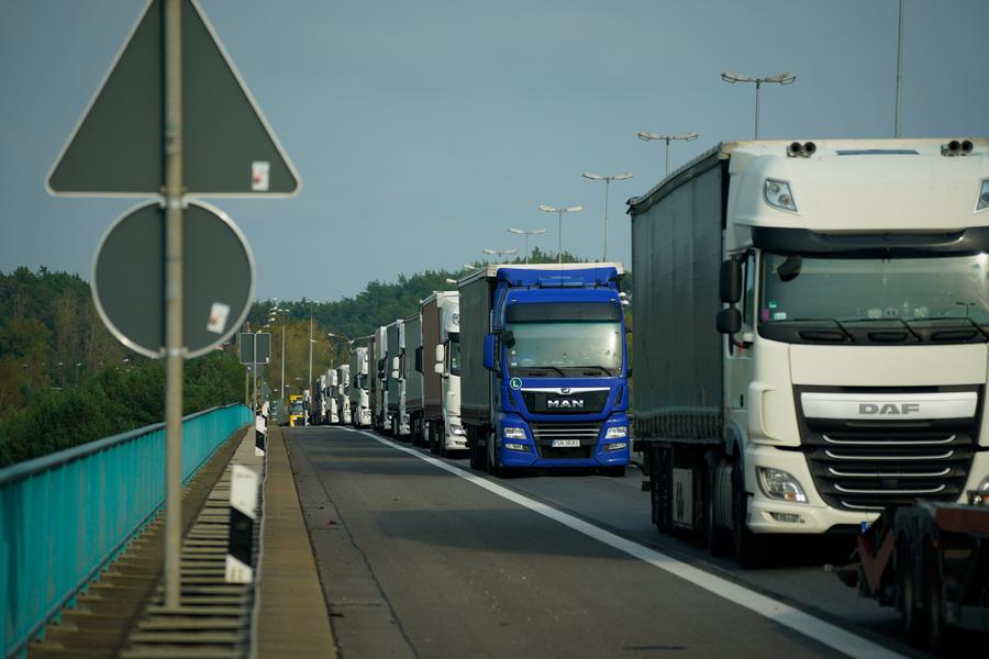 From Poland to Germany, trucks and container vehicles formed a long, slow-moving queue stretching from one end of the bridge to the other. By contrast, the traffic from Germany into Poland appeared relatively smooth.