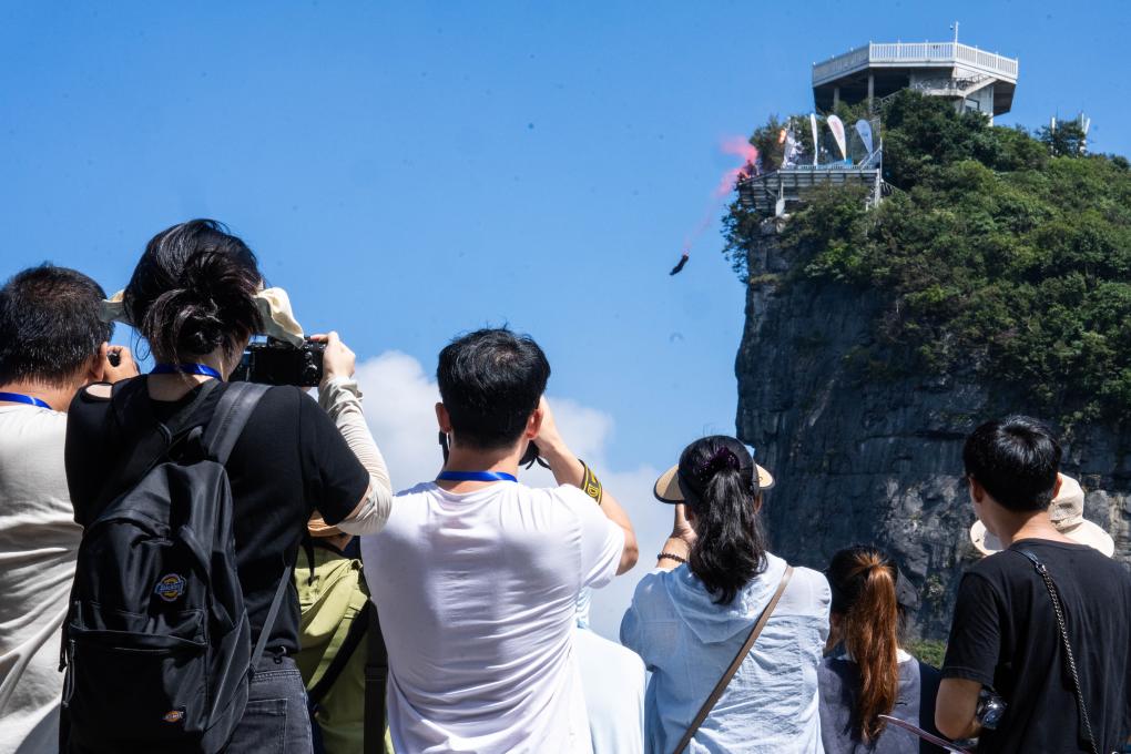 CHANGSHA, Sept. 18 (Xinhua) -- Australian wingsuiter Tahi Munroe won the air racing title in 24.703 seconds at the tenth World Wingsuit League (WWL) Wingsuit World Championship at Tianmen Mountain in Zhangjiajie, central China's Hunan Province on Wednesday.