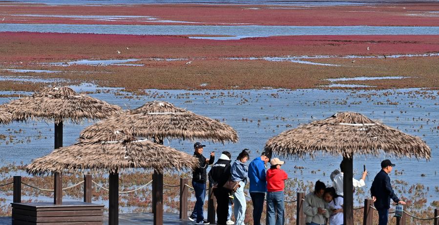 Red Beach in NE China's Liaoning welcomes tourists with spectacular view -Xinhua