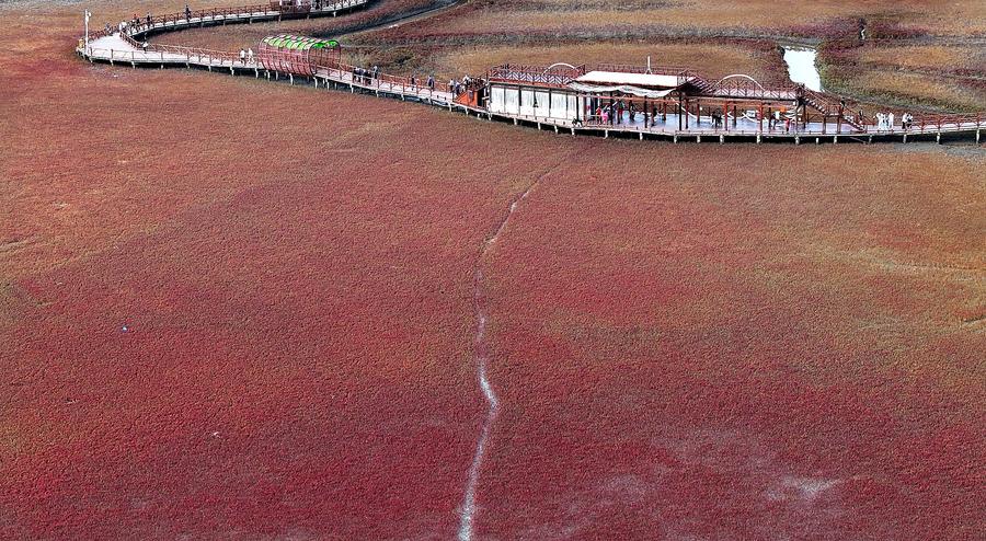 Red Beach in NE China's Liaoning welcomes tourists with spectacular view