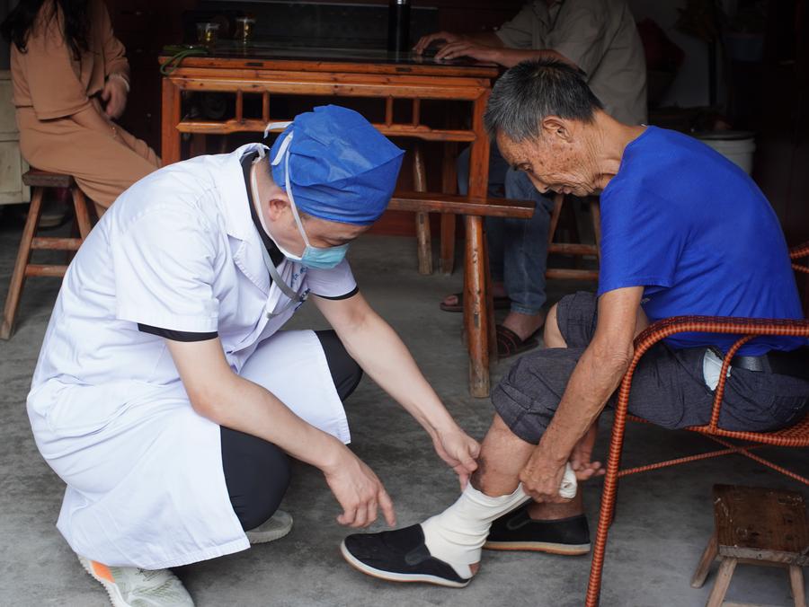 HANGZHOU, Sept. 18 (Xinhua) -- Ye Chunjiang, a dedicated burns surgeon, made the 50-minute drive one Thursday afternoon from his hospital in the city of Quzhou, east China's Zhejiang Province, to the home of local villager Wu Fagui, to examine his foot.