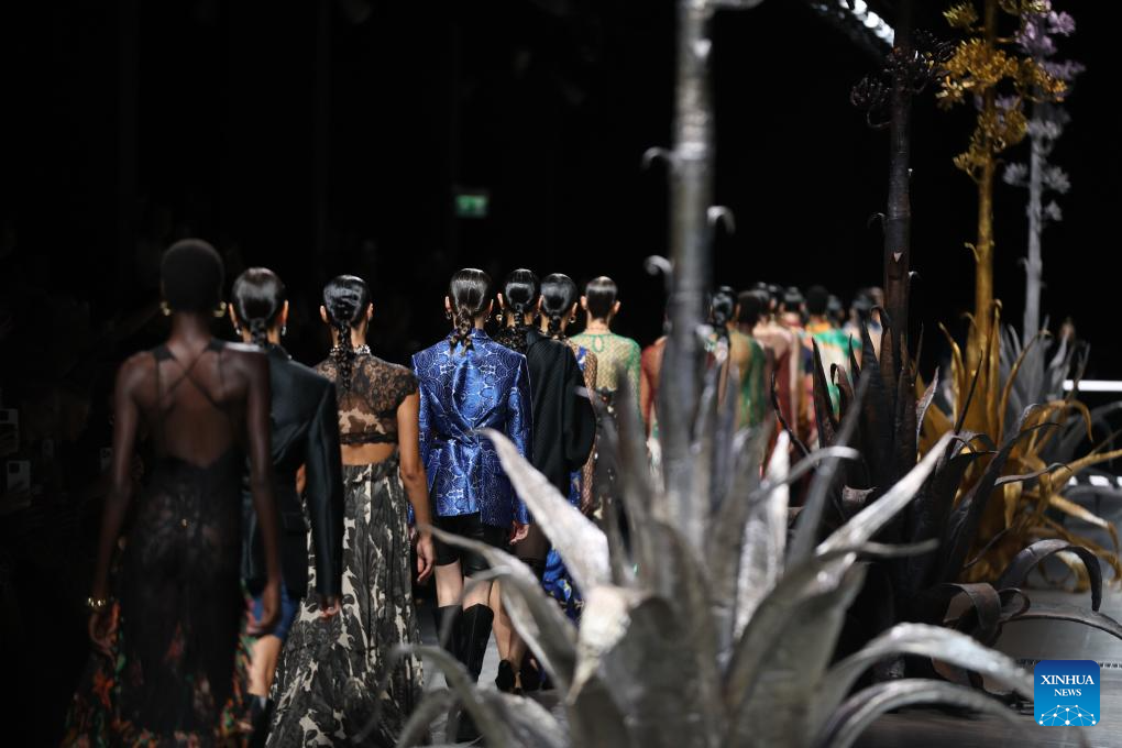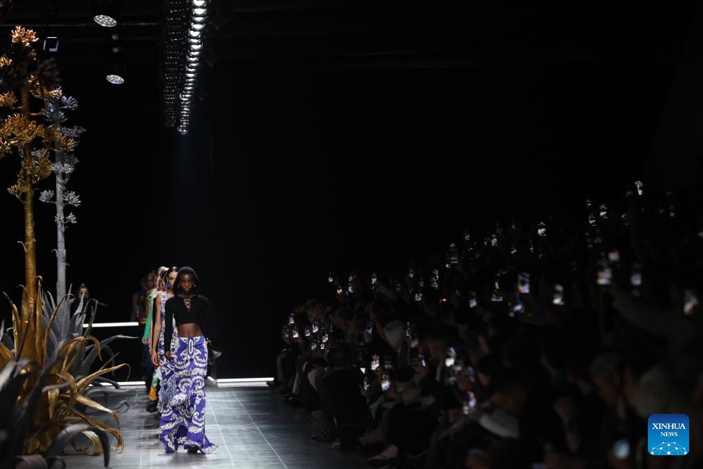 Models present creations of Etro Women's wear Spring/Summer 2025 collections during Milan Fashion Week in Milan, Italy, Sept. 18, 2024. (Xinhua/Li Jing)