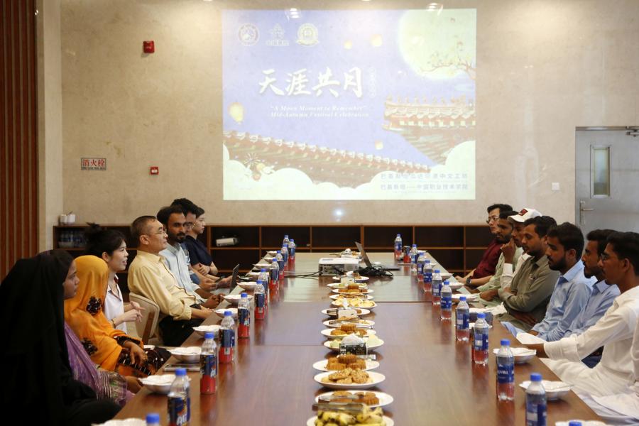GWADAR, Pakistan, Sept. 19 (Xinhua) -- Under the glow of the full moon in Pakistan's southwest Balochistan province, Pakistani students and Chinese nationals gathered to celebrate the Mid-Autumn Festival, a cherished tradition symbolizing family reunion at the China Business Center in the port city of Gwadar.