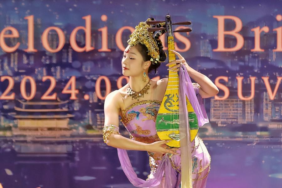SUVA, Sept. 19 (Xinhua) -- Hundreds of Fijian people spent an unforgettable night at the Suva Civic Center Auditorium in Suva, the capital city of Fiji, on Tuesday as the Mid-Autumn Festival came alive with a stunning performance by artists from central China's Hubei Province.