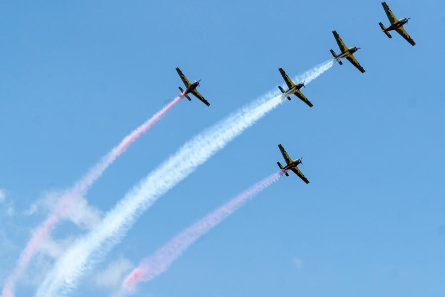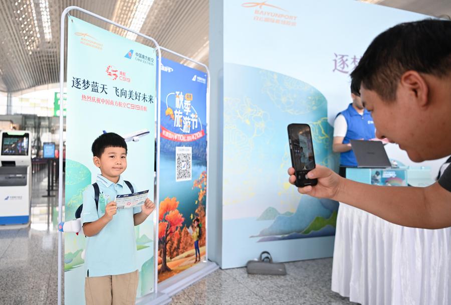 The 59th and 60th satellites of the BeiDou system are launched at 9:14 a.m. (Beijing Time) by a Long March-3B carrier rocket and the Yuanzheng-1 (Expedition-1) upper stage attached to the carrier rocket from the Xichang Satellite Launch Center in southwest China's Sichuan Province, Sept. 19, 2024. (Photo by Yang Xi/Xinhua)This photo taken on Sept. 3, 2024 shows the Huajiang Grand Canyon Bridge under construction in southwest China's Guizhou Province. With a designed height of 625 meters between the bridge deck and the Beipanjiang River below, the Huajiang Grand Canyon Bridge, which began its construction in 2022, is set to be the highest in the world after it is completed in 2025. The 2,890-meter-long bridge is located in Bouyei-Miao Autonomous County of Guanling and is part of an expressway linking the Liuzhi special district of Liupanshui City and Anlong County of Bouyei-Miao Autonomous Prefecture of Qianxinan, Guizhou Province. (Xinhua/Liu Xu)A boy who is about to take the maiden C919 commercial flight operated by China Southern Airlines poses for photos at the Guangzhou Baiyun International Airport in Guangzhou, south China's Guangdong Province, Sept. 19, 2024. A C919 passenger aircraft operated by China Southern Airlines took off from the Guangzhou Baiyun International Airport on Thursday, marking the Guangzhou-based airline's maiden C919 commercial flight. So far, China's three major airlines have all started commercial operations with the country's first domestically produced large passenger aircraft. (Xinhua/Deng Hua)A law enforcer attends a drone control training session on China Coast Guard (CCG) vessel Sifang during a patrol task in waters adjacent to China's Huangyan Dao, Sept. 14, 2024. (Xinhua/Cao Yiming)People visit APSARA Conference 2024 in Hangzhou, east China's Zhejiang Province, Sept. 19, 2024. The three-day APSARA Conference 2024 opened here on Thursday with three thematic halls showcasing latest technologies and products. (Xinhua/Huang Zongzhi)Rajawali Laut Flight, the aerobatics team of the Indonesian Naval Aviator, perform at the Bali International Airshow 2024 in Bali, Indonesia, Sept. 18, 2024. The Bali International Airshow 2024 is held here from Sept. 18 to 21. (Photo by Dicky Bisinglasi/Xinhua)A woman visits the Silk Road Danqing, an exhibition of copies of cave temple mural paintings along the ancient Silk Road at the China Cultural Center in Paris, France, Sept. 18, 2024. The exhibition will last till Sept. 24. (Xinhua/Gao Jing)An aerial drone photo taken on Sept. 17, 2024 shows a view of fishermen dockyard near the Gwadar port in Gwadar, southwest Pakistan. Launched in 2013, China-Pakistan Economic Corridor (CPEC), the flagship project under the China-proposed Belt and Road Initiative (BRI), is a corridor linking Gwadar port with Kashgar in northwest China's Xinjiang Uygur Autonomous Region, highlighting energy, transport, and industrial cooperation. (Xinhua/Ahmad Kamal)■