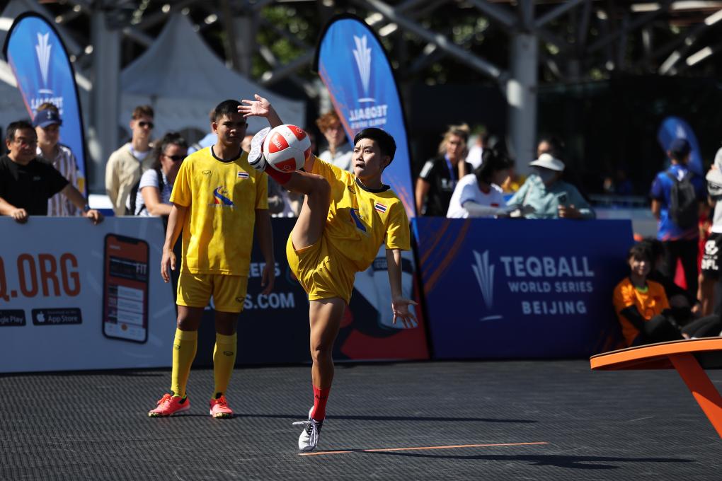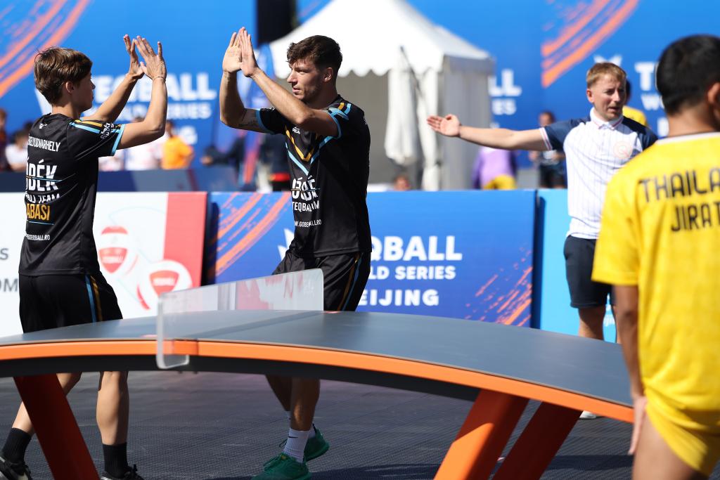 Players compete during the mixed doubles matches at the 2024 Teqball World Series Beijing in Beijing, capital of China, Sept. 21, 2024. (Xinhua/Li Ming)Sorrasak Thaosiri (L)/Areeya Homdee of Thailand compete during the mixed doubles round of 16 match against Gabriella Kota/Balazs Katz of Hungary at the 2024 Teqball World Series Beijing in Beijing, capital of China, Sept. 21, 2024. (Xinhua/Li Ming)Sorrasak Thaosiri (front)/Areeya Homdee of Thailand compete during the mixed doubles round of 16 match against Gabriella Kota/Balazs Katz of Hungary at the 2024 Teqball World Series Beijing in Beijing, capital of China, Sept. 21, 2024. (Xinhua/Li Ming)Gabriella Kota (L)/Balazs Katz of Hungary compete during the mixed doubles round of 16 match against Sorrasak Thaosiri/Areeya Homdee of Thailand at the 2024 Teqball World Series Beijing in Beijing, capital of China, Sept. 21, 2024. (Xinhua/Li Ming)Kinga Barabasi/Apor Gyorgydeak (front 2nd R) of Romania compete during the mixed doubles round of 16 match against Jirati Chanliang/Jutatip Kuntatong of Thailand at the 2024 Teqball World Series Beijing in Beijing, capital of China, Sept. 21, 2024. (Xinhua/Li Ming)China's Shi Huhong practises before the mixed doubles round of 32 match at the 2024 Teqball World Series Beijing in Beijing, capital of China, Sept. 21, 2024. (Xinhua/Li Ming)Jirati Chanliang/Jutatip Kuntatong (R) of Thailand compete during the mixed doubles round of 16 match against Kinga Barabasi/Apor Gyorgydeak of Romania at the 2024 Teqball World Series Beijing in Beijing, capital of China, Sept. 21, 2024. (Xinhua/Li Ming)Kinga Barabasi (1st L)/Apor Gyorgydeak (2nd L) of Romania celebrate scoring during the mixed doubles round of 16 match against Jirati Chanliang/Jutatip Kuntatong of Thailand at the 2024 Teqball World Series Beijing in Beijing, capital of China, Sept. 21, 2024. (Xinhua/Li Ming)Jirati Chanliang (front) /Jutatip Kuntatong of Thailand compete during the mixed doubles round of 16 match against Kinga Barabasi/Apor Gyorgydeak of Romania at the 2024 Teqball World Series Beijing in Beijing, capital of China, Sept. 21, 2024. (Xinhua/Li Ming)Sorrasak Thaosiri (front)/Areeya Homdee of Thailand compete during the mixed doubles round of 16 match against Gabriella Kota/Balazs Katz of Hungary at the 2024 Teqball World Series Beijing in Beijing, capital of China, Sept. 21, 2024. (Xinhua/Li Ming)Gabriella Kota (front)/Balazs Katz of Hungary compete during the mixed doubles round of 16 match against Sorrasak Thaosiri/Areeya Homdee of Thailand at the 2024 Teqball World Series Beijing in Beijing, capital of China, Sept. 21, 2024. (Xinhua/Li Ming)Gabriella Kota (front)/Balazs Katz of Hungary compete during the mixed doubles round of 16 match against Sorrasak Thaosiri/Areeya Homdee of Thailand at the 2024 Teqball World Series Beijing in Beijing, capital of China, Sept. 21, 2024. (Xinhua/Li Ming)China's Ai Liang practises before the mixed doubles round of 32 match at the 2024 Teqball World Series Beijing in Beijing, capital of China, Sept. 21, 2024. (Xinhua/Li Ming)