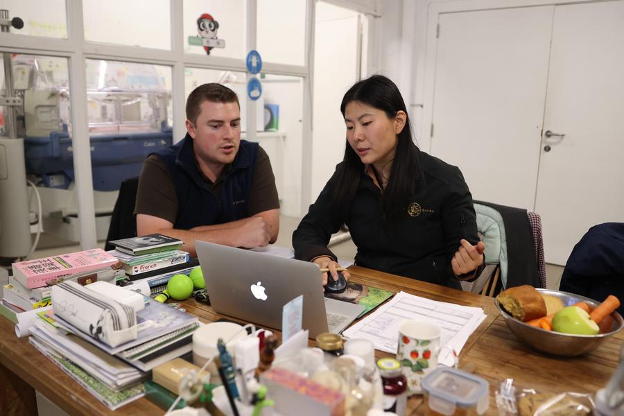 Hao Hao was always wary when she first came to Belgium, backing away while holding a piece of bamboo when she entered the room, Liu said. "Now even if I change my hairstyle, Hao Hao can still recognize me immediately and comes over to interact, even though pandas don't have the best vision and can only see outlines of people."