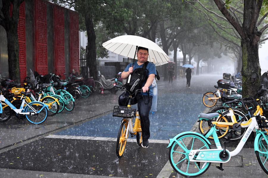 A citizen rides amid rainfall in a street in Shanghai, east China, Sept. 20, 2024. China's financial hub, Shanghai, had evacuated 112,000 people as of Friday morning due to Typhoon Pulasan, which brought record-breaking rainfall to parts of the city. According to the municipal flood control office, 649 vessels have either been evacuated or returned to port to seek shelter, 54 train services have been suspended, and 26 ferries' operations have been halted. (Photo by Chen Haoming/Xinhua)Zhang Shupeng of China competes during the flying through targets competition at the 10th World Wingsuit League (WWL) Wingsuit Flying World Championship at the Tianmen Mountain National Forest Park in Zhangjiajie, central China's Hunan Province, on Sept. 19, 2024. (Xinhua/Chen Sihan)Tao Yonghong makes a Gan hair embroidery work at an exhibition center for intangible cultural heritage in Nanchang, east China's Jiangxi Province, Sept. 13, 2024. Gan hair embroidery is an art that uses human hair as thread to create intricate designs on fabric. With a history of nearly 500 years, it is recognized as an intangible cultural heritage of Jiangxi Province. The word Gan itself is a shortened name for Jiangxi. In the hands of Tao Yonghong, the 17th generation inheritor of Gan hair embroidery making skills, hair becomes the ink and colors of a painter that depict all sorts of objects such as landscapes, figures, flowers and birds. Apart from inheriting the traditions, Tao has developed many customized works, sewing memories and blessings into the embroidery works for her clients. (Xinhua/Sui Shangjun)A humanoid robot demonstrates its object handling skills at the 2024 World Manufacturing Convention in Hefei, east China's Anhui Province, Sept. 20, 2024. The 2024 World Manufacturing Convention opened Friday in Hefei, capital of east China's Anhui Province, highlighting the latest products and innovations in the manufacturing sector. Themed "Intelligent Manufacturing for a Better Future," the four-day event boasts a total exhibition area of 20,000 square meters and includes exhibitions, forums and seminars. (Xinhua/Huang Bohan)Devon Dotson (2nd R) of Joventut Badalona falls during a warmup basketball match between Chinese men's basketball team and Spanish Liga ACB club Joventut Badalona in Xi'an, northwest China's Shaanxi Province, Sept. 20, 2024. (Xinhua/Li Yibo)A man catches a box of fish at the Gurpinar aquatic products market in Istanbul, Türkiye, Sept. 18, 2024. The market has become busy since September as Türkiye enters the peak fishing season which typically lasts until April of the following year. (Xinhua/Liu Lei)A model presents a creation from Women's wear Spring/Summer 2025 collections of Sportmax during Milan Fashion Week in Milan, Italy, on Sept. 20, 2024. (Xinhua/Li Jing)Children members of a lion dance troupe are seen during a performance in Rawang, Selangor, Malaysia, Sept. 13, 2024. (Xinhua/Cheng Yiheng)Smoke traces are seen as an Israeli anti-missile system intercepts rockets fired from Lebanon, near the northern Israeli border with Lebanon, on Sept. 20, 2024. Hezbollah launched over 100 rockets at more than 30 settlements in western Galilee and a key intelligence base in northern Israel on Friday, retaliating for an Israeli airstrike on Beirut's southern suburbs that killed at least 12 people and wounded 66 others, according to the Lebanese Health Ministry. (Ayal Margolin/JINI via Xinhua)■A boy sits on debris after an Israeli bombardment in the Nuseirat refugee camp, central Gaza Strip, Sept. 20, 2024. (Photo by Marwan Dawood/Xinhua)■