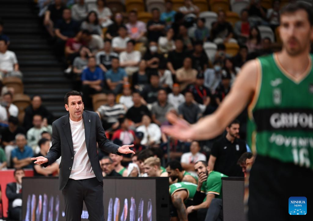 Daniel Miret, head coach of Joventut Badalona, reacts during a warmup basketball match between Chinese men's basketball team and Spanish Liga ACB club Joventut Badalona in Xi'an, northwest China's Shaanxi Province, Sept. 20, 2024. (Xinhua/Li Yibo)