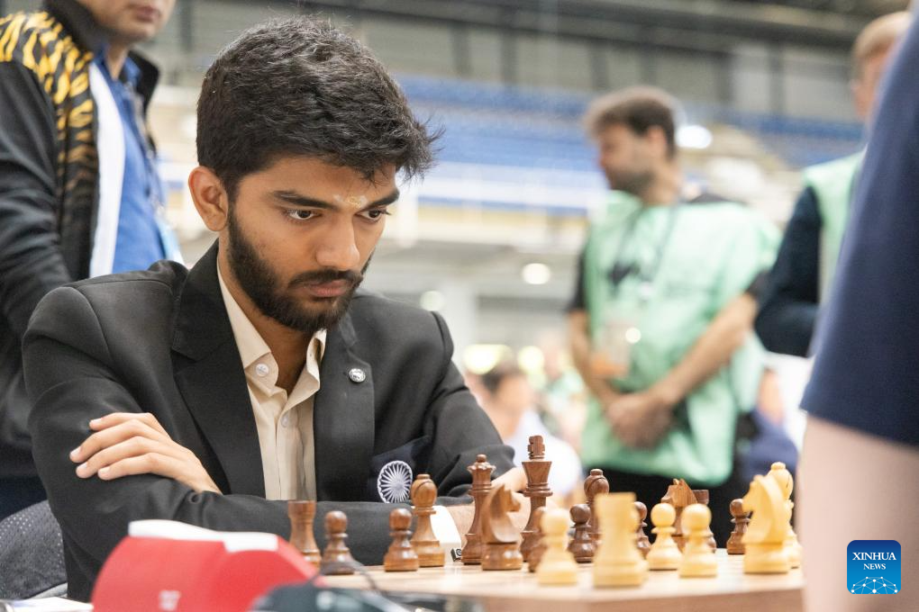 Gukesh D of India competes during round 11 of the Men's category of the 45th FIDE Chess Olympiad Budapest 2024 in Budapest, Hungary on Sept. 22, 2024. (Photo by Attila Volgyi/Xinhua)
