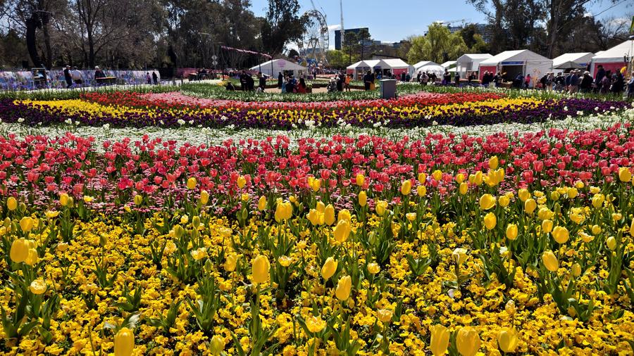 This photo taken on Sept. 20, 2024 shows a view of the Floriade festival in Canberra, Australia. (Photo by Xiao Chongming/Xinhua)
