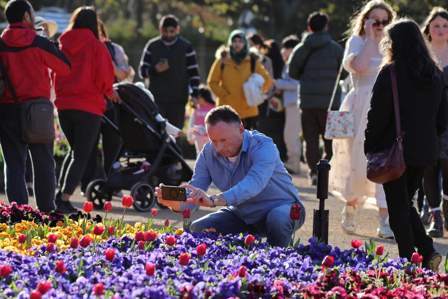 This photo taken on Sept. 20, 2024 shows a view of the Floriade festival in Canberra, Australia. (Photo by Xiao Chongming/Xinhua)This photo taken on Sept. 20, 2024 shows a view of the Floriade festival in Canberra, Australia. (Photo by Xiao Chongming/Xinhua)Visitors take a sightseeing train at the Floriade festival in Canberra, Australia, on Sept. 20, 2024. (Photo by Xiao Chongming/Xinhua)A visitor takes photos of flowers at the Floriade festival in Canberra, Australia, on Sept. 20, 2024. (Photo by Xiao Chongming/Xinhua)A woman smells orchid flowers during an orchid show in Canberra, Australia, Sept. 22, 2024. (Photo by Chu Chen/Xinhua)A visitor takes photos of flowers at the Floriade festival in Canberra, Australia, on Sept. 20, 2024. (Photo by Xiao Chongming/Xinhua)Visitors take photos of flowers at the Floriade festival in Canberra, Australia, on Sept. 20, 2024. (Photo by Xiao Chongming/Xinhua)■